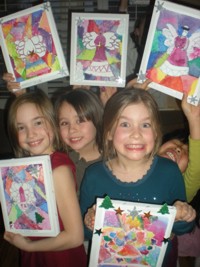 Children get to create their own unique watercolour painting and take it home. I guide party-goers through a step-by-step process of their composition. The fun begins when the paintbrushes come out and I illustrate how the paint is dropped onto a watercolour paper. I assist anyone who needs help or repeat demonstrations while they paint.