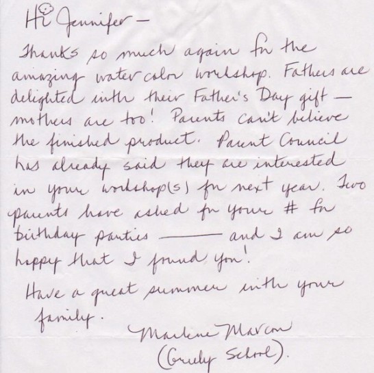 "For the past couple of year’s we’ve presented our hockey coach(s) with an original watercolour painting of their team. When the coaches open their paintings, they are truly touched by such a personalized gift. She is able to capture the essence of the team and every child in her painting. Jennifer’s watercolour team pictures are a unique end of year gift to thank coaches for their contribution throughout the season. "Kim Pilon, WEHL Team Manager